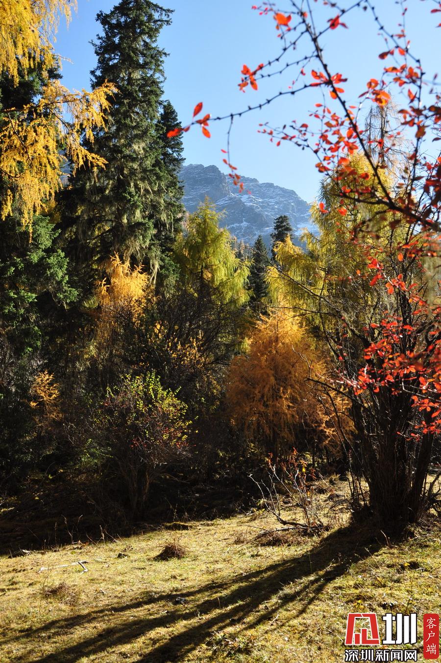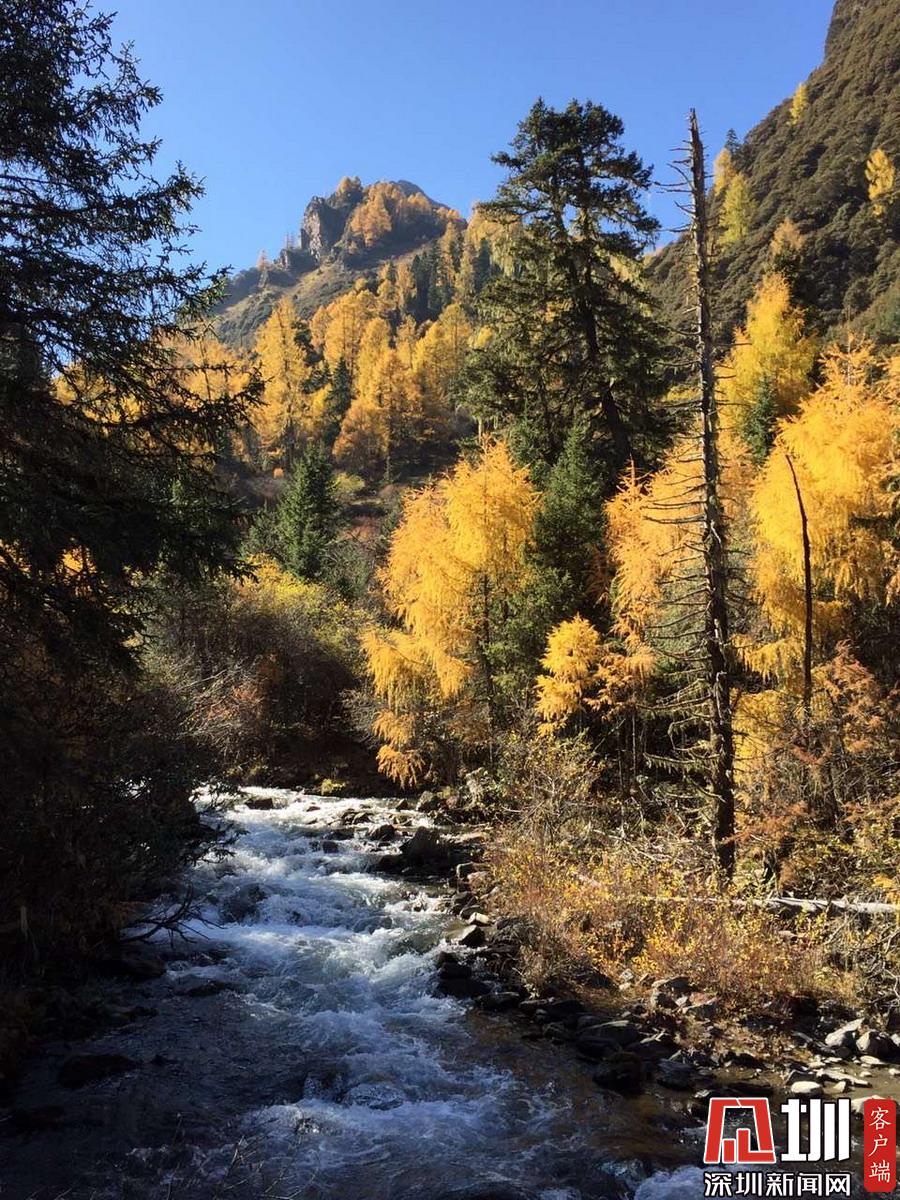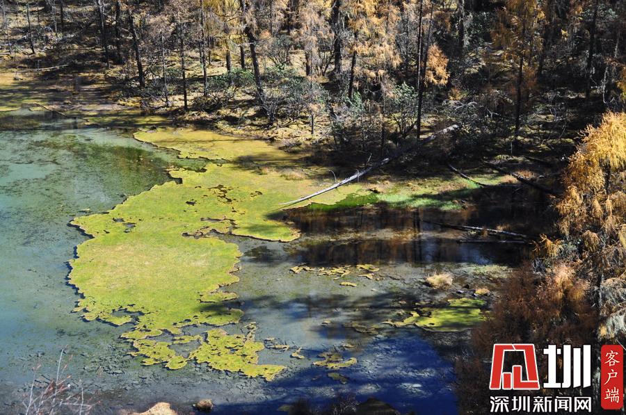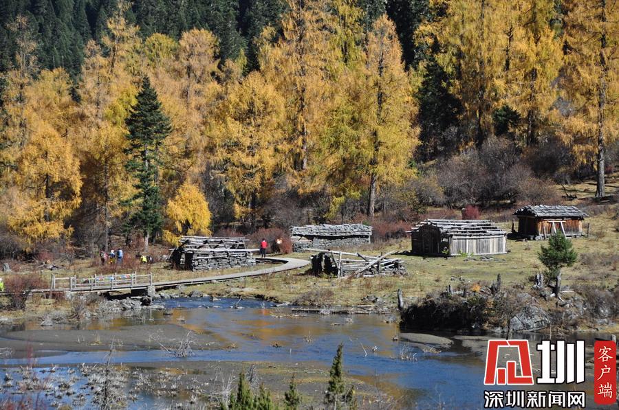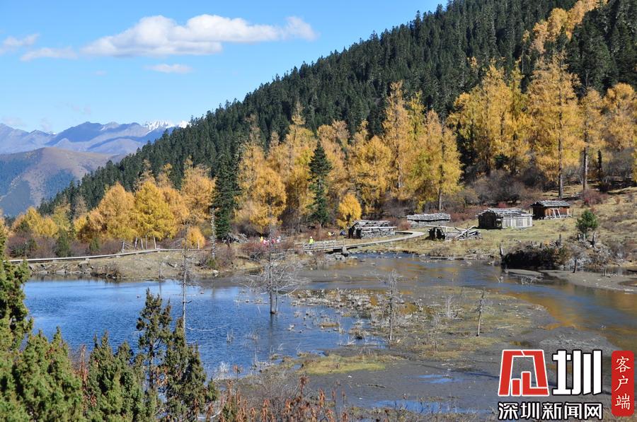 溝里有大片的落葉松、杜鵑和云杉林,雪山、海子、濕地、河流等景觀應有盡有,唯獨沒有公路,只能沿木棧道徒步游覽。李仁奇攝