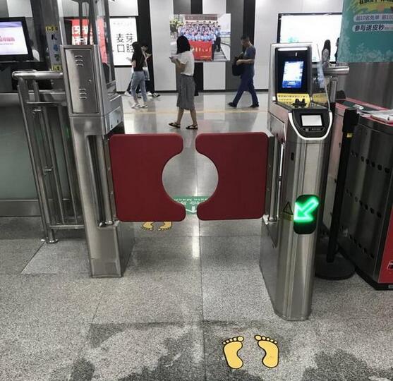 (地鐵11號線邊門檢票機(jī),注冊后“刷臉”過閘)