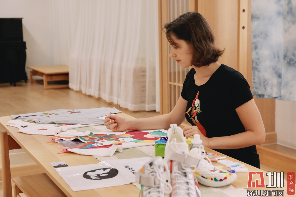 見圳客戶端·深圳新聞網(wǎng)2020年9月16日訊 (記者 黃芷苑 曹園芳)她穿著黑色的T恤和運動鞋——上面色彩斑斕的設(shè)計格外顯眼,這是她自己的設(shè)計作品,將藝術(shù)與時尚完美地結(jié)合在了一起。她就是深圳思富藝術(shù)文化有限公司創(chuàng)始人Kovalenko Alevtina,一位來自俄羅斯的藝術(shù)家。