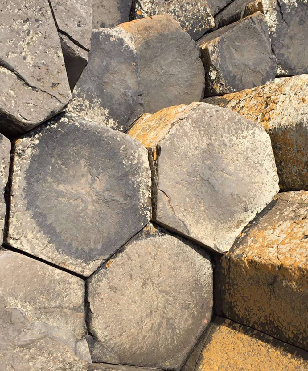 約五千萬年前,在今天蘇格蘭西部內(nèi)赫布里底群島一線至北愛爾蘭東部火山非?;钴S,一股股玄武巖巖熔流從裂隙的地殼中涌出,隨著灼熱的熔巖冷卻收縮,結(jié)晶的時(shí)候,開始爆裂呈規(guī)則的六邊形形態(tài)。李仁奇 攝
