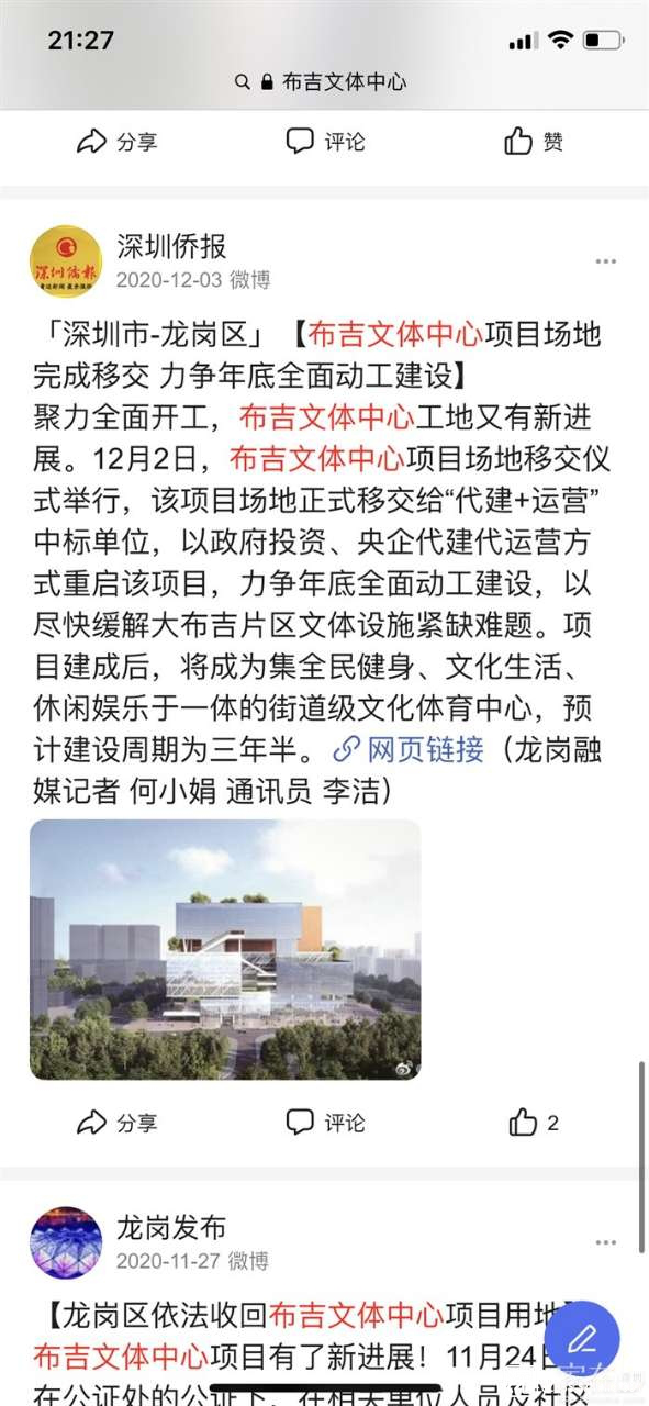 有關(guān)布吉文體中心的相關(guān)新聞報道截圖