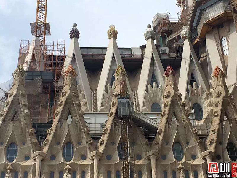 高迪73歲去世時,教堂僅完工了不到四分之一。圣家堂的建設(shè)進(jìn)展緩慢,僅靠個人捐贈和門票收入維系,中間又受西班牙內(nèi)戰(zhàn)干擾,在二十世紀(jì)五十年代建造時斷時續(xù)。圖為圣家族大教堂。李仁奇 攝