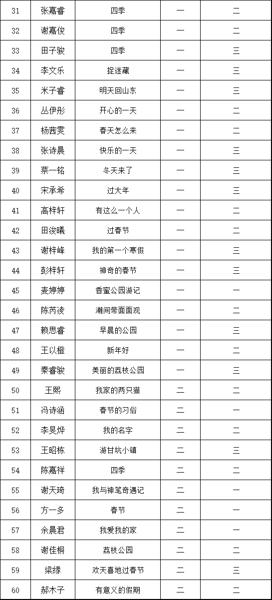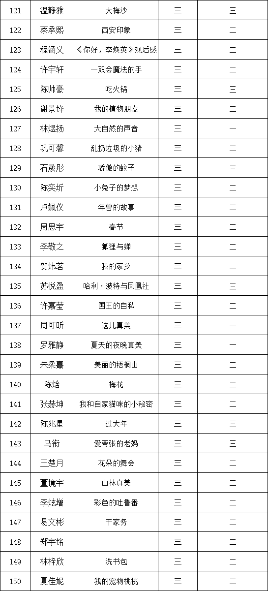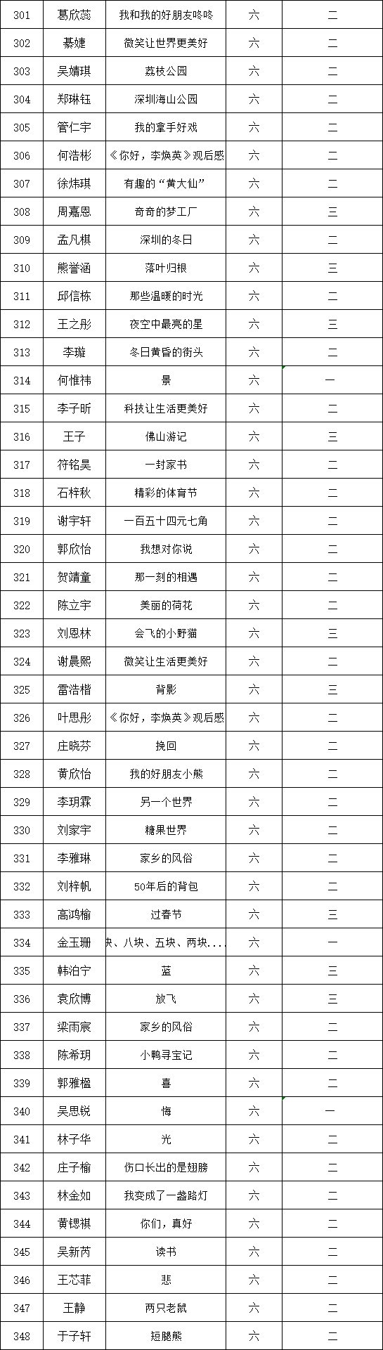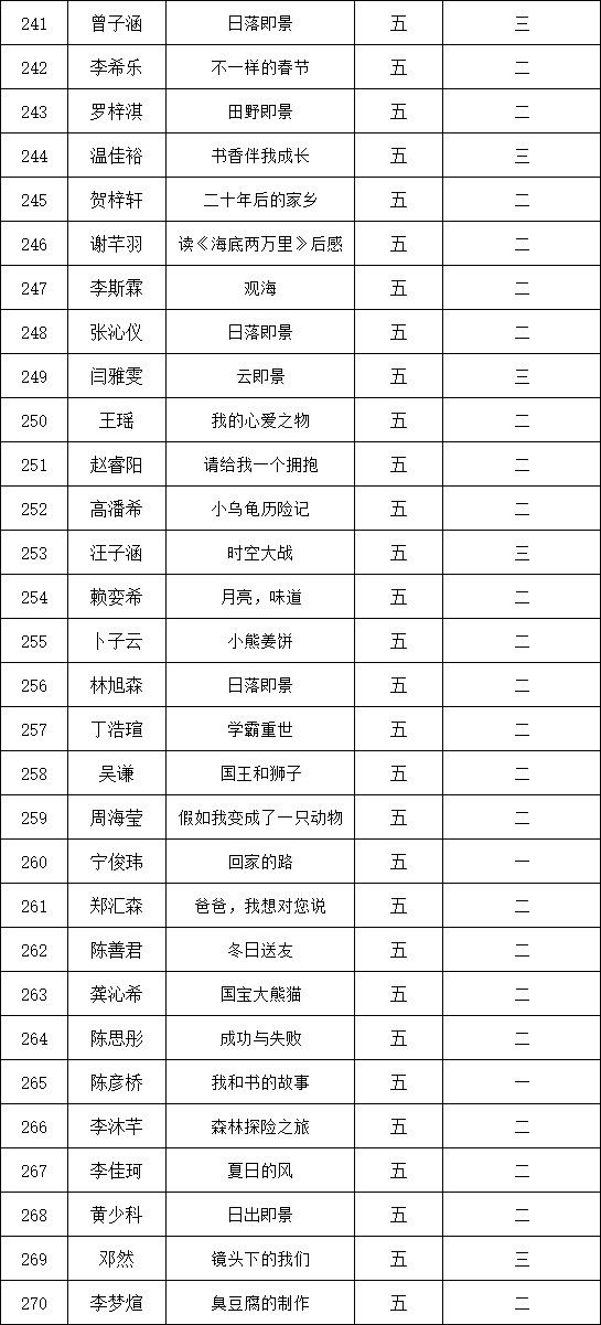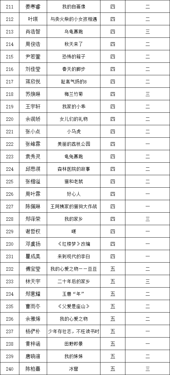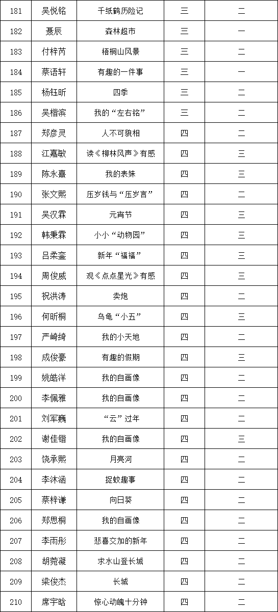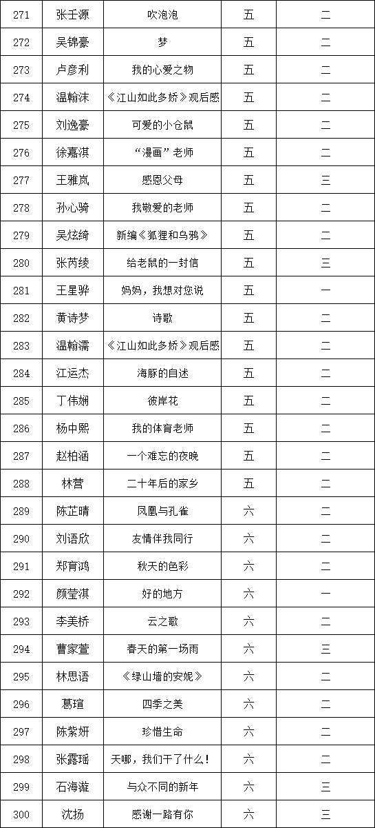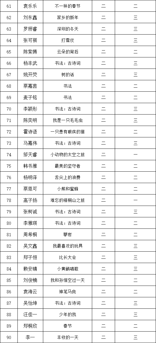 自2021年1月,活動(dòng)征稿啟動(dòng)以來,獲得了深圳市廣大中小學(xué)生、教師、文學(xué)愛好者的熱烈響應(yīng)積極參與,吸引了深圳百余所學(xué)校的上萬人關(guān)注報(bào)名。現(xiàn)公布深圳市濱河小學(xué)校園專場(chǎng)晉級(jí)復(fù)賽名單如下: