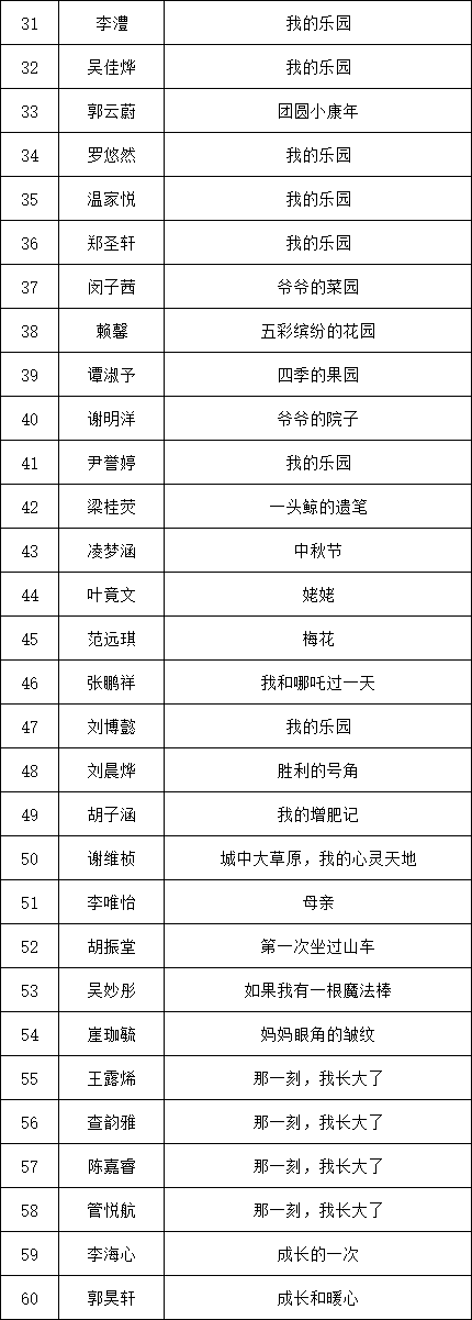 自2021年1月,活動(dòng)征稿啟動(dòng)以來(lái),獲得了深圳市廣大中小學(xué)生、教師、文學(xué)愛(ài)好者的熱烈響應(yīng)積極參與,吸引了深圳百余所學(xué)校的上萬(wàn)人關(guān)注報(bào)名?,F(xiàn)公布龍華區(qū)玉龍學(xué)校專場(chǎng)晉級(jí)復(fù)賽名單如下: