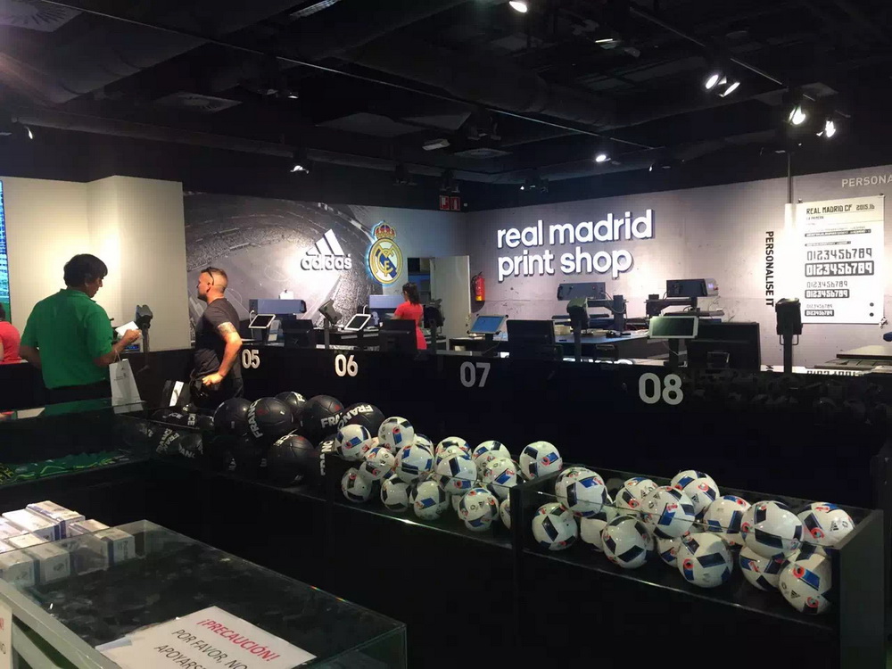 阿迪達斯公司與皇馬俱樂部合辦的紀念品商店生意興隆。李仁奇 攝