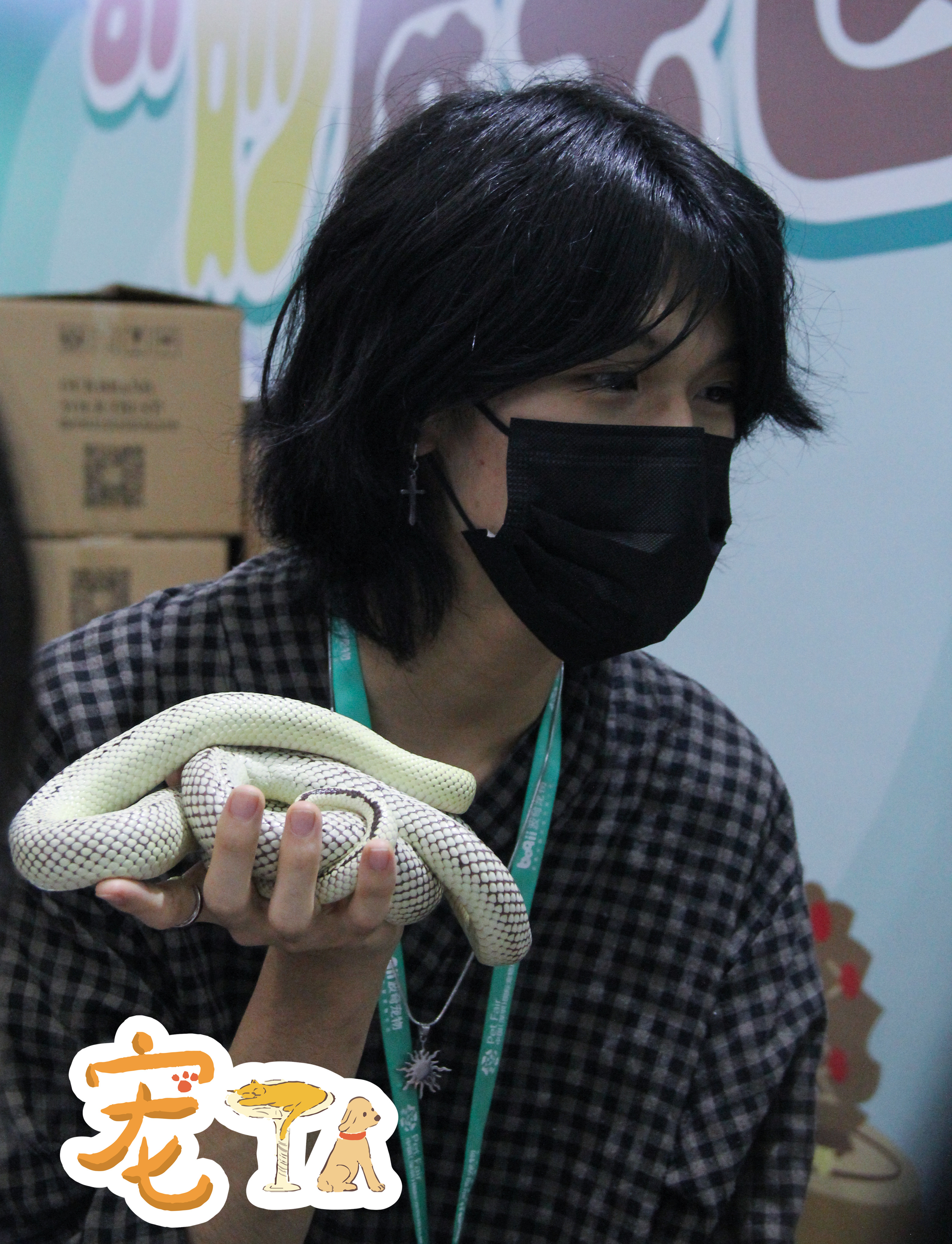 異寵展示區(qū)的工作人員在向觀眾介紹飼養(yǎng)蛇的注意事項(xiàng)。