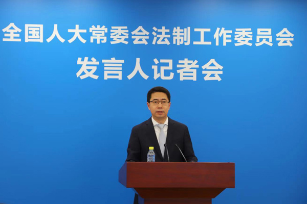 法工委發(fā)言人臧鐵偉向記者通報(bào)情況。攝影/《中國人大》全媒體記者?侯朝宣