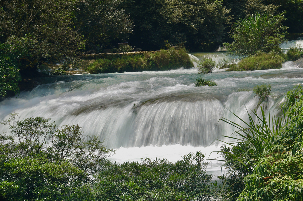 景區(qū)主要有拉雅瀑布、68級跌水瀑布、石上森林、野豬林、水上森林、天鐘洞、臥龍?zhí)?、鴛鴦湖等21個(gè)景點(diǎn),享有“超級盆景”之譽(yù)。李仁奇 攝