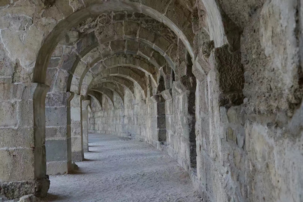 觀眾席頂端有59個(gè)拱形門(mén)相貫通的長(zhǎng)廊,將整個(gè)劇場(chǎng)相連為一體。李仁奇 攝