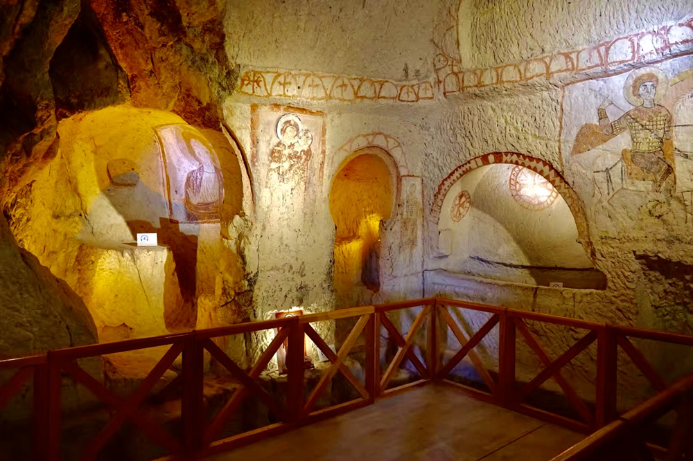 壁畫(huà)一般是《圣經(jīng)》中的人物畫(huà)像,一部分仍色彩鮮明,清晰可見(jiàn)。李仁奇 攝