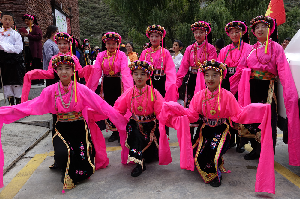 一個(gè)個(gè)風(fēng)姿綽約的丹巴姑娘在藍(lán)天白云的映襯下,來回穿梭,宛如朵朵飄逸的彩云,光彩耀眼。李仁奇 攝