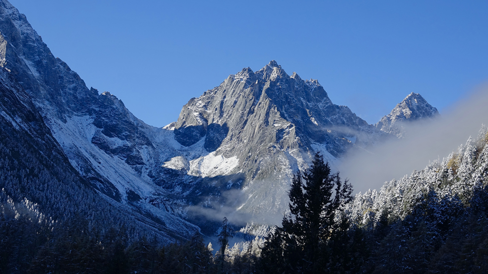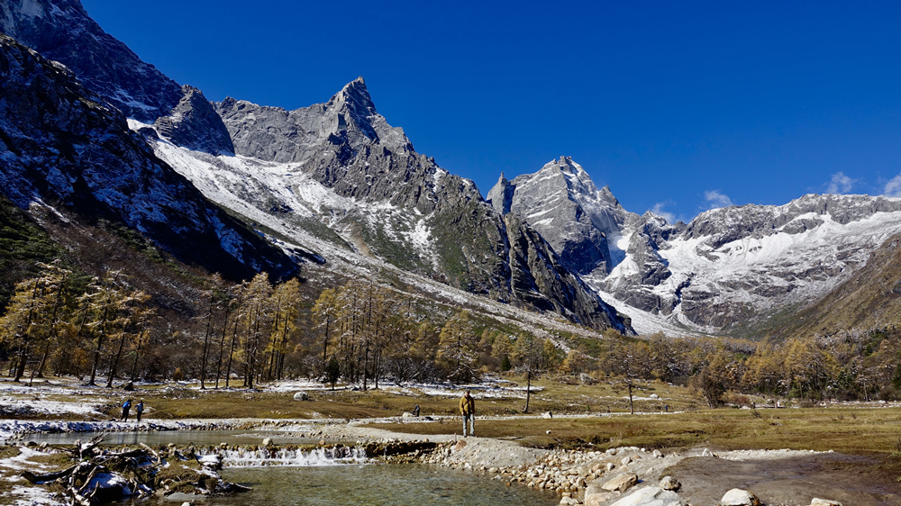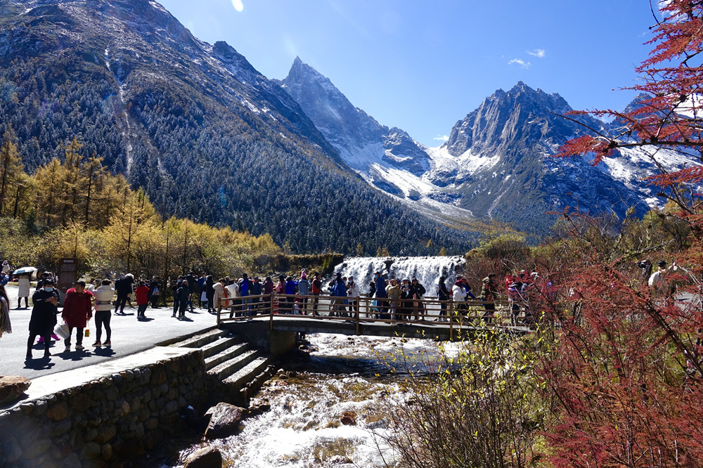 景區(qū)內(nèi)紅葉、杜鵑花種類繁多,森林原始、瀑布飛掛、冰川奇特,四季皆有看點(diǎn),尤以深秋時(shí)節(jié)的絢麗多姿聞名,被比作四姑娘山的美麗背影。李仁奇 攝