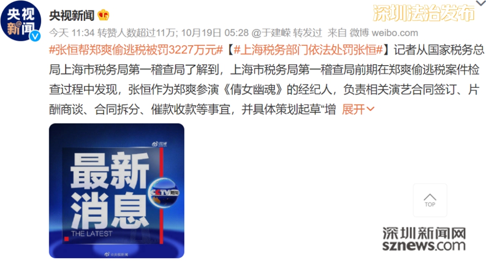 (相關(guān)報(bào)道:鄭爽逃稅張恒被罰3227萬明星經(jīng)紀(jì)人為啥也被盯上了)