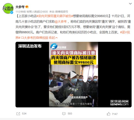 (相關(guān)報道:讓眾多店家崩潰的潼關(guān)肉夾饃商標(biāo)許可費國家知識產(chǎn)權(quán)局回應(yīng)了