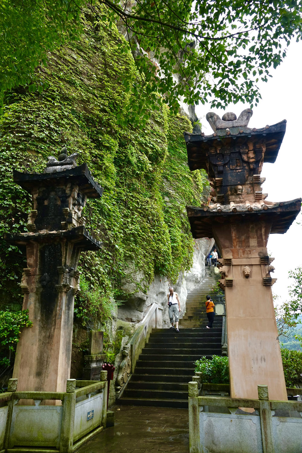 全寨共分兩部分,山下9層和山上3層錯落有致,從遠處眺望12層樓重檐高聳,渾然一體,宏偉壯觀,共高56米,閣內(nèi)每層石壁上均有題詠。李仁奇 攝