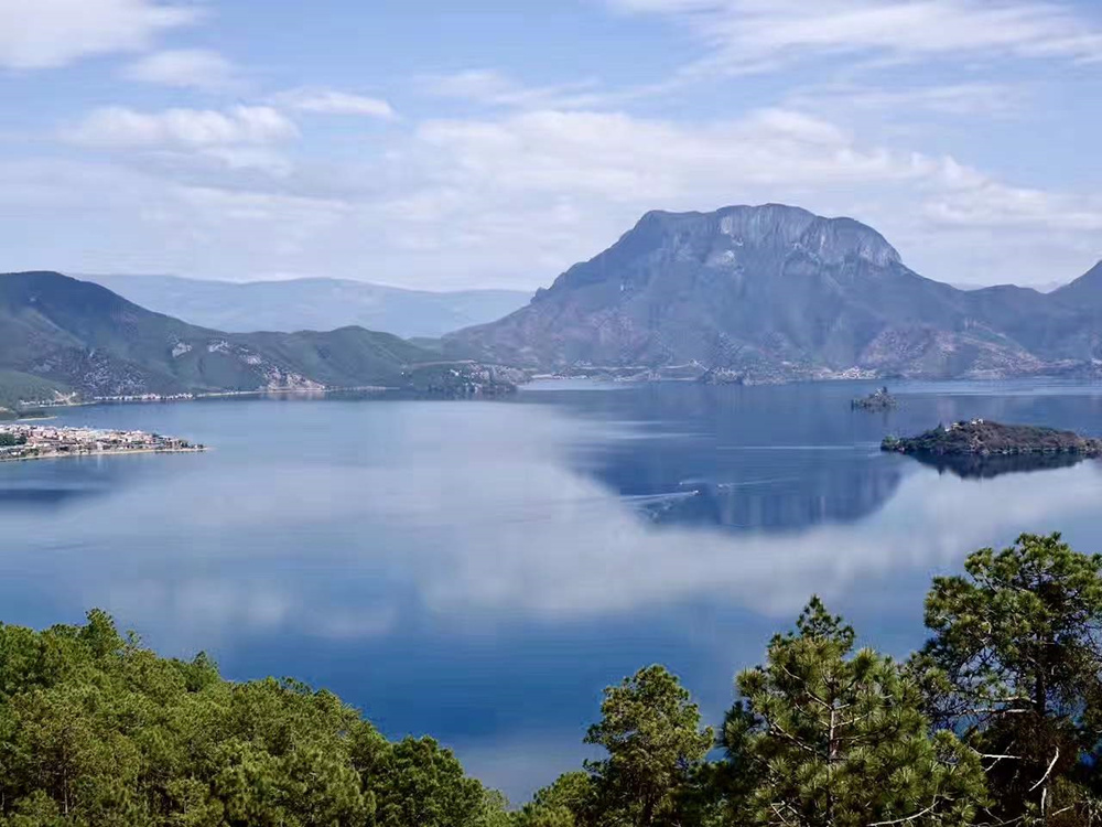 當(dāng)?shù)厝朔Q瀘沽湖為“謝納咪”,意為大海、母湖,從高處鳥瞰,如一只展翅的飛燕,被譽(yù)為“高原明珠”。李仁奇 攝