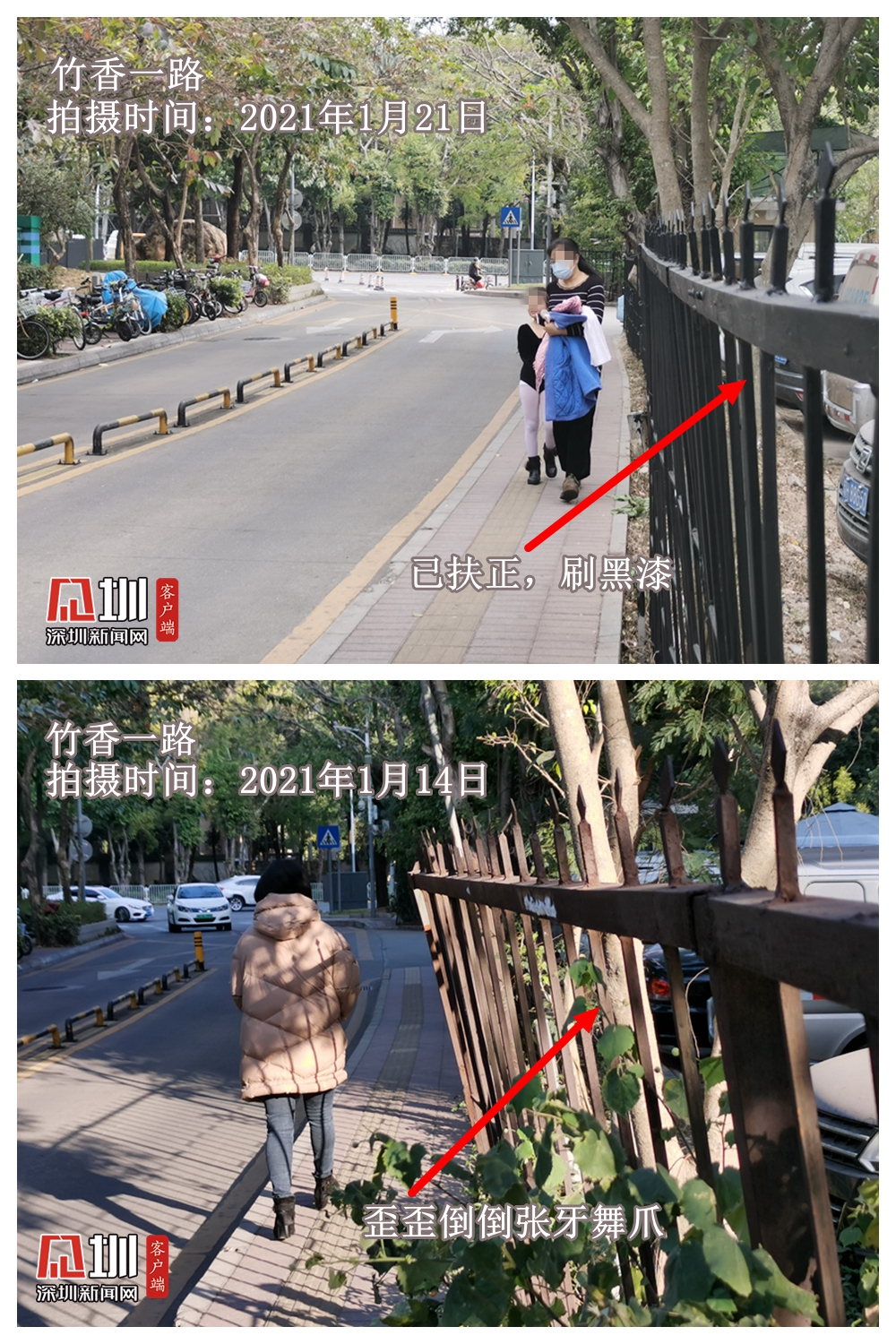 見圳客戶端·深圳新聞網(wǎng)2021年1月21日訊(記者 陳致遠)窄窄的人行道,搖搖欲墜張牙舞爪的圍欄——第16期深網(wǎng)記“路”儀報道的竹香一路,有了最新進展。此前因找不到代建單位而無法移交主管部門管養(yǎng)的這條路,在記者報道后不到一周的時間,歪歪倒倒的圍欄扶正了,人行道也即將拓寬。