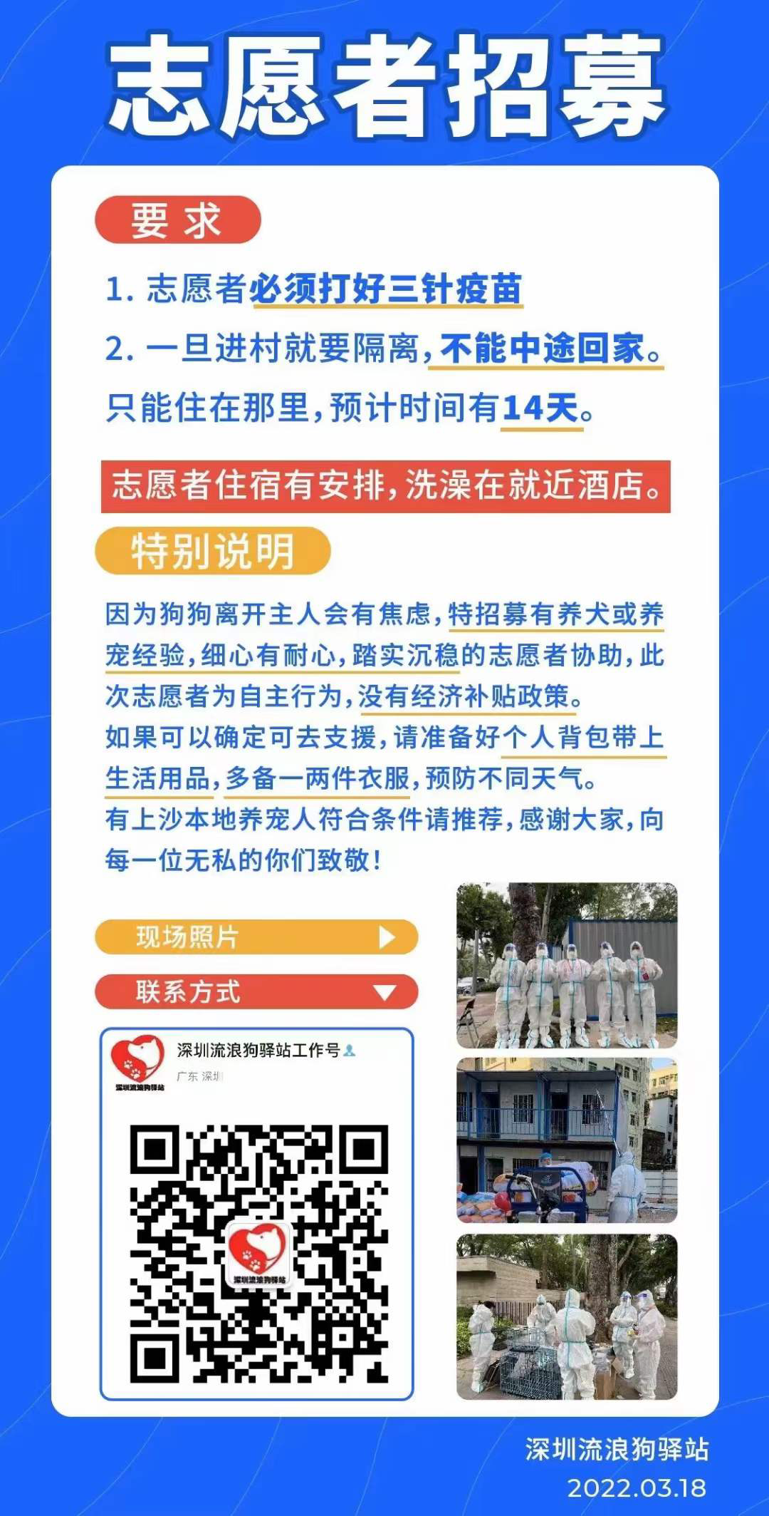 此外,為防止后續(xù)安置寵物數量增多出現人手不足的情況,深圳動物相關的公益組織也發(fā)起了志愿者征集,具體要求和聯系方式見下圖。