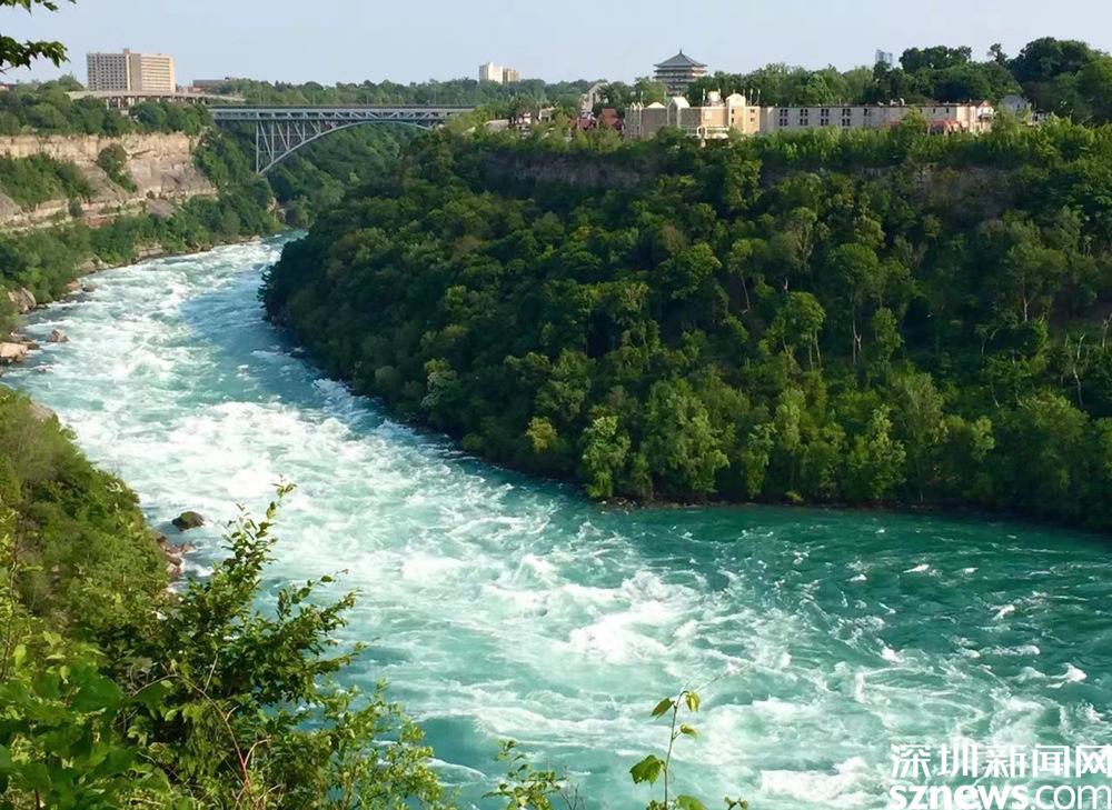 遠(yuǎn)處架筑在尼亞加拉河上的是彩虹橋,也是美國(guó)和加拿大的邊界。李仁奇 攝