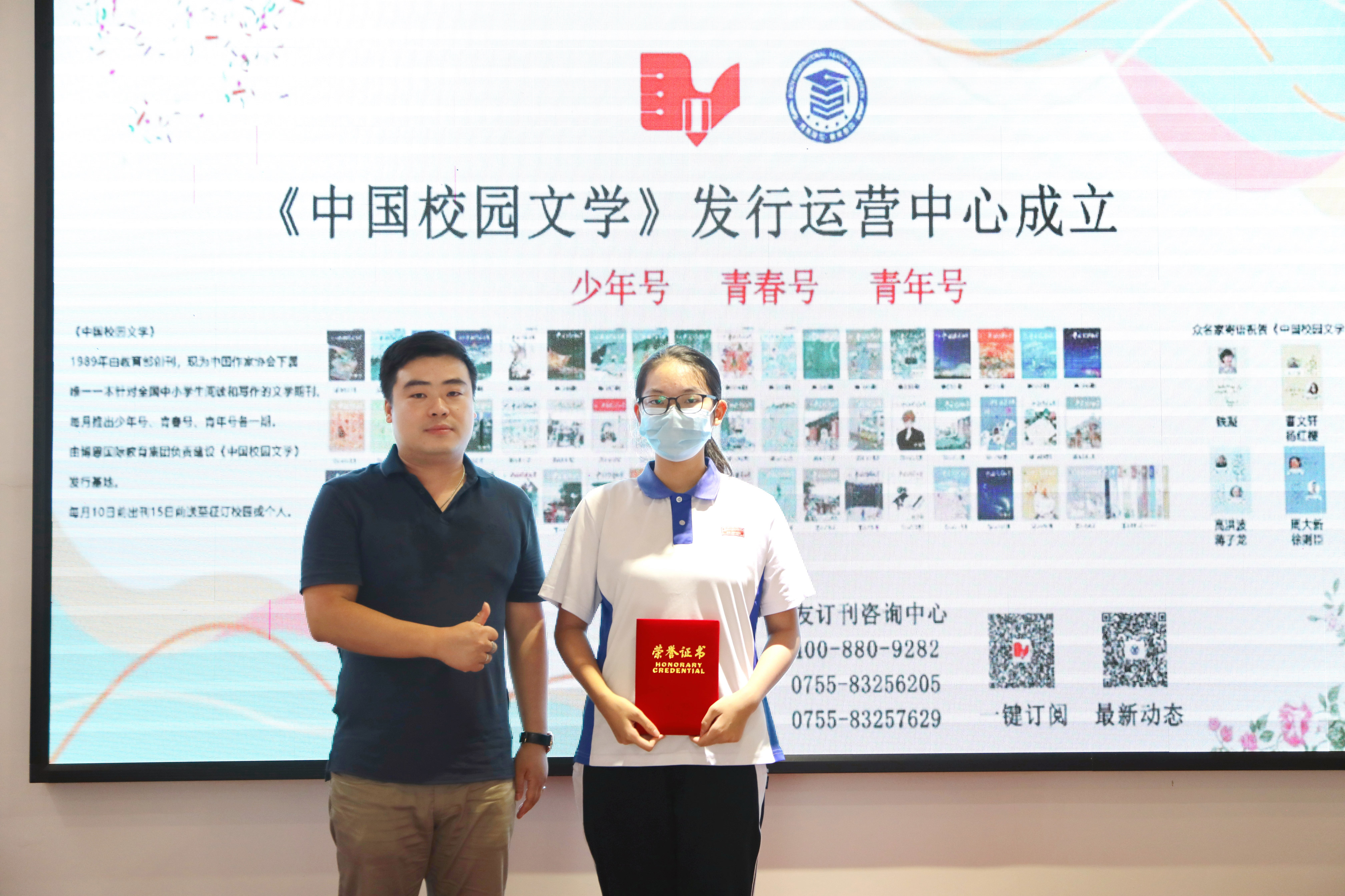 “一起向未來?鵬城冬奧故事”,中國校園文學(xué)獲獎代表與頒獎嘉賓合影