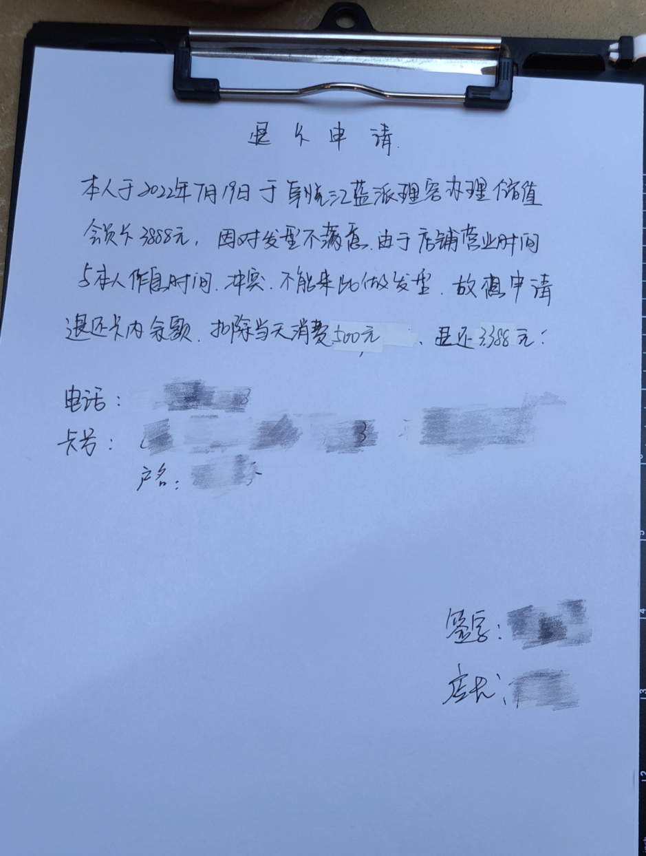 藍(lán)派理容:答應(yīng)退款卻一拖再拖