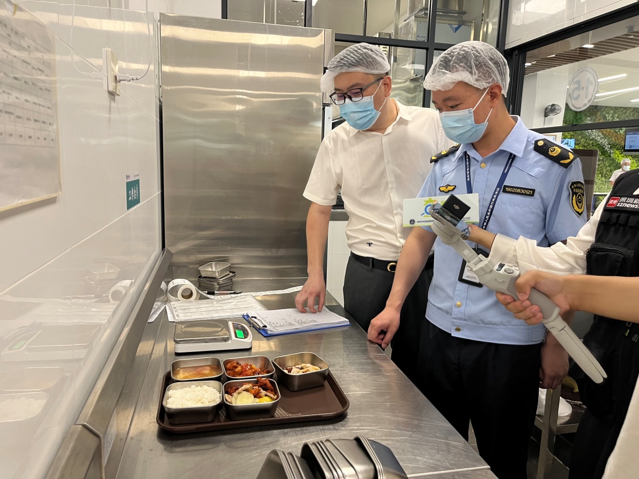 執(zhí)法人員現(xiàn)場對(duì)學(xué)校后廚進(jìn)行詳細(xì)檢查,分別從采購索證索票、進(jìn)貨查驗(yàn)、制作加工、備餐配送、場所和設(shè)施清潔維護(hù)、餐飲具清洗消毒、從業(yè)人員健康管理,制止餐飲浪費(fèi),食品安全總監(jiān)配置履職情況,以及落實(shí)主體責(zé)任的“日管控周排查月調(diào)度”制度等方面進(jìn)行詳細(xì)檢查。經(jīng)檢查,整體情況良好,但存在部分細(xì)節(jié)問題,如水產(chǎn)品刀具分類可更細(xì)致、操作臺(tái)積水需清理、面點(diǎn)間的食材存放需避免陽光直射等,針對(duì)檢查過程中發(fā)現(xiàn)的問題,執(zhí)法人員現(xiàn)場責(zé)令學(xué)校限期整改到位。同時(shí),快檢工作人員對(duì)餐廳使用的食材進(jìn)行了抽檢,結(jié)果均為陰性。
