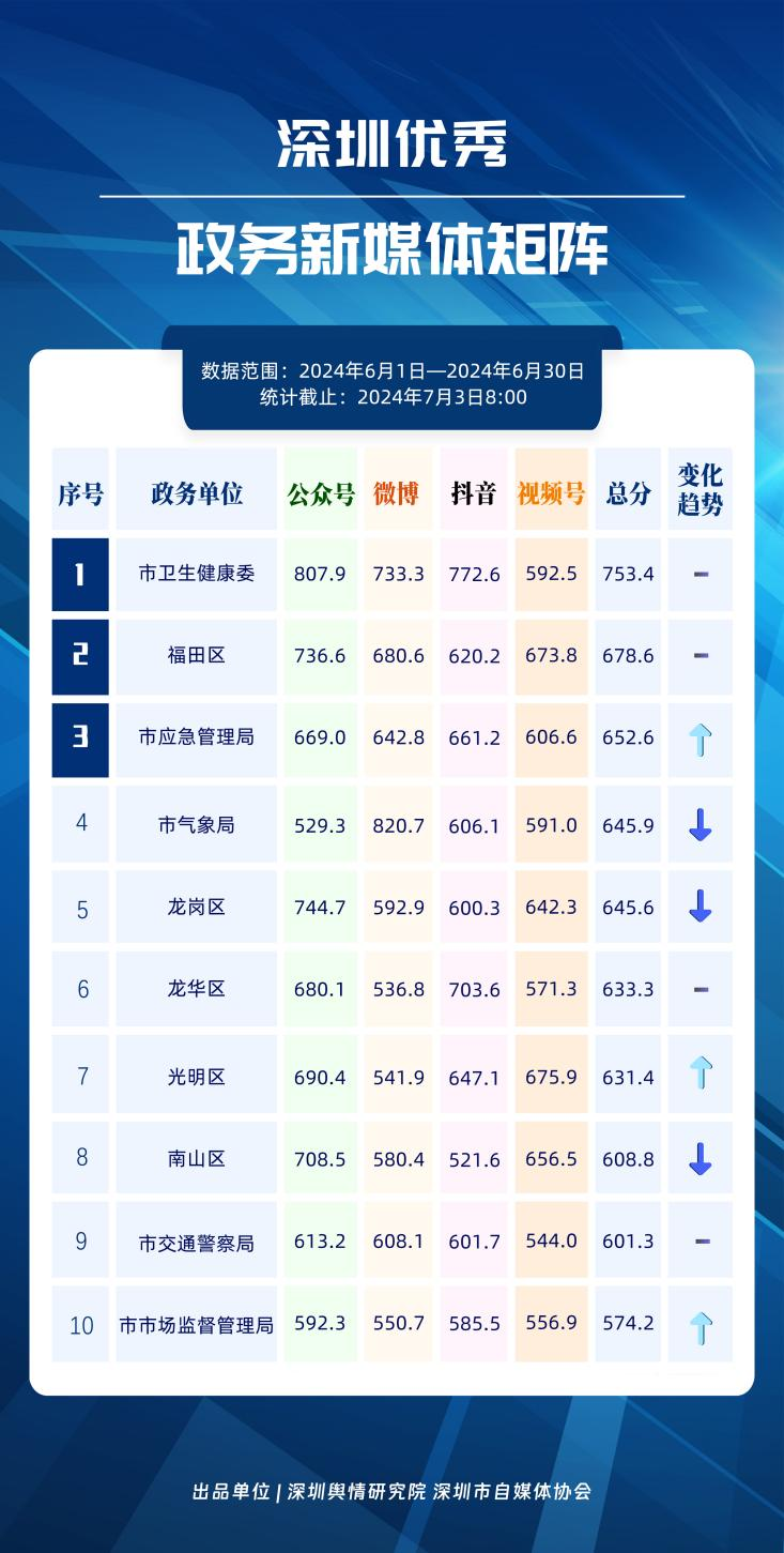 6月“深圳優(yōu)秀政務(wù)新媒體矩陣”發(fā)布,這5區(qū)5單位新媒體矩陣上榜!