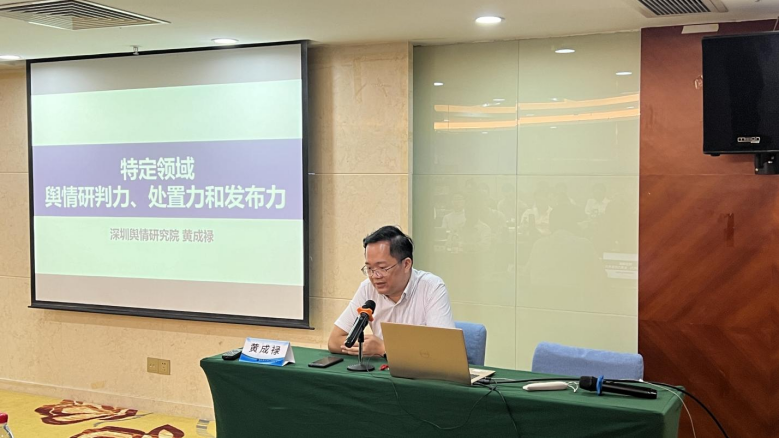 深圳新聞網(wǎng)2024年8月2日訊(記者 蔡雪曼 實習生 謝臻兒為提高全市特定領域人員輿情工作素養(yǎng),深化輿情意識和認知,助力營造良好的輿論氛圍,7月25日下午,某市直單位舉辦專題培訓班,邀請深圳輿情研究院執(zhí)行院長黃成祿擔任授課老師,圍繞《特定領域輿情研判力、處置力和發(fā)布力》主題展開授課。
