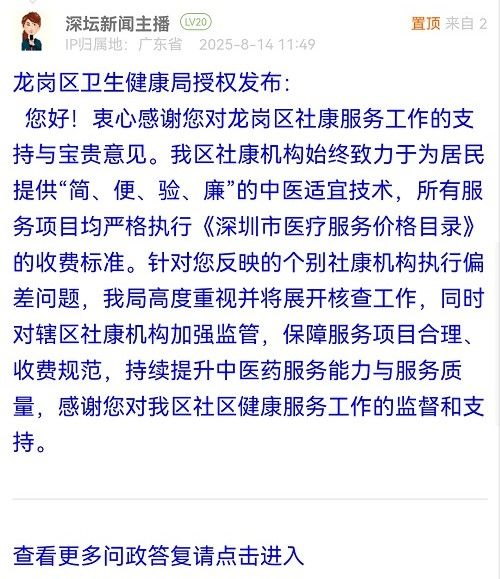 您好!衷心感謝您對龍崗區(qū)社康服務(wù)工作的支持與寶貴意見。我區(qū)社康機(jī)構(gòu)始終致力于為居民提供“簡、便、驗(yàn)、廉”的中醫(yī)適宜技術(shù),所有服務(wù)項(xiàng)目均嚴(yán)格執(zhí)行《深圳市醫(yī)療服務(wù)價格目錄》的收費(fèi)標(biāo)準(zhǔn)。針對您反映的個別社康機(jī)構(gòu)執(zhí)行偏差問題,我局高度重視并將展開核查工作,同時對轄區(qū)社康機(jī)構(gòu)加強(qiáng)監(jiān)管,保障服務(wù)項(xiàng)目合理、收費(fèi)規(guī)范,持續(xù)提升中醫(yī)藥服務(wù)能力與服務(wù)質(zhì)量,感謝您對我區(qū)社區(qū)健康服務(wù)工作的監(jiān)督和支持。