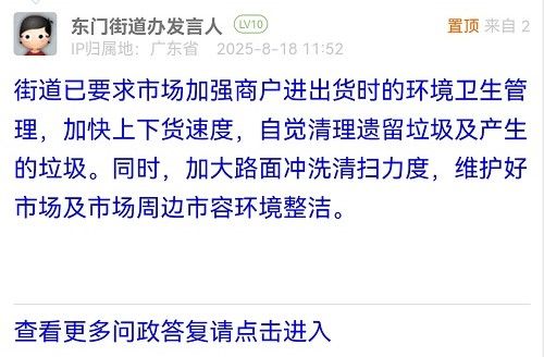 17. 帖文《呼吁福田農(nóng)批每日早晨沖水保潔方式進(jìn)行改進(jìn)》
