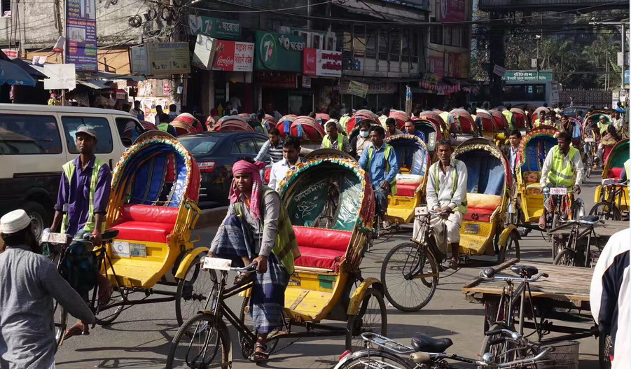 實(shí)拍世界三輪車(chē)之都達(dá)卡 浩浩蕩蕩車(chē)流構(gòu)成奇特街景