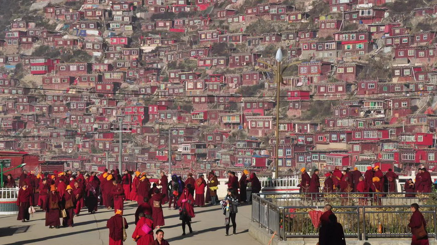 震撼!世界最大佛學(xué)院建在海拔4000米的山谷 密密麻麻的僧舍連綿數(shù)公里